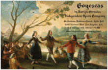 Independent Opera Company continues its 2014-2015 season with Goyescas,by Enrique Granados;(sung in Spanish with English Supertitles). Inspired by paintings of Francisco Goya, Goyescas tells the story of a torrid romance in the brutal and dangerous world that was Madrid in the early 1800s. Goyescas is filled with fiery Spanish music, lush choruses, and breathtaking arias. This 1 hour opera promises to be a very rewarding experience for newcomers and seasoned opera lovers alike. Also in the first half we will present a concert of operatic favorites which also tell stories of "tragic love affairs"! Selections include Carmen, Romeo and Juliet, I Pagliacci, Tosca and more!