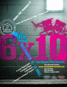 Six Original Plays, Six Local Playwrights, Six Directors, A great evening of theatre! December 9 11, 2010 Friday and Saturday at 7:30pm Sunday at 2:00pm THE PLAYS: "The Perfect Couple" By Lindsay Adams Directed by Robert Fletcher "Old Tales" By Deborah Buckner Directed by Kyle Wallen "Oedipus: The Prequel" By Matt Fotis Directed by Kim Hentges "No Other Way" By Michelle T. Johnson Directed by Shanese Shields "Ricky" By Natalie Licardello Directed by Ray Zarr "Buying the Farm" By Lezlie Revelle Directed by Danelle Drury