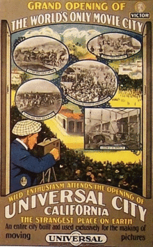 Founder Carl Laemmle officially opened the Second Universal City on March 15, 1915, on the 230-acre Taylor Ranch property. At the launch event, a crowd of men and women dressed in the attire of the era, eagerly awaited the display of film stages, daredevil stunt pilots and silent film idols, as well as movie cameras Laemmle had brought along. "See how slapstick comedies are made. See your favorite screen stars do their work. See how we make the people laugh or cry or sit on the edge of their chairs the world over!" stated a poster touting Universal's opening.