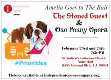 Independent Opera Company presents Triple Bill, One Penny Opera by Dale Jergenson, Stoned Guest by P.D.Q. Bach and Amelia Goes to the Ball by Gian Carlo Menotti. Production will be fully staged with piano accompaniment. Two performances only on Friday Feb 23 and Saturday Feb 24 at 7:30 pm at St. Andrew's Lutheran Church Nolte Hall 11555 National Blvd Los Angeles CA 90064. Carol Becker Stage Director and Galina Barskaya Music Director. Starring Monika Beal, Mariana Ramirez, Phil Meyer, Megan Gillespie, Joe Michels, Joel Balzun, Jennifer Weiss, Erica Lazerow, Sarah Horn, Brooke Lohman, Andy Leggett, Grace Kim, Ria Mukund and also wonderful ensemble!