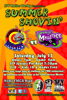 Hot summer nights aren't just boiling your blood... they've awoken an ancient San Fernando Valley rivalry between the Reseda Wreckers and the Topanga Maul Rats! The Reseda Wreckers were SFVRD's reigning home team champion until their battle last winter when the Maul Rats rose up victorious for the first time.
