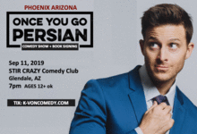 "The most famous half-Persian comedian in the world" is coming to town for 1 night only! He'll do a comedy show + will take pics & autograph his new hilarious book "Once You Go Persian" after the show.